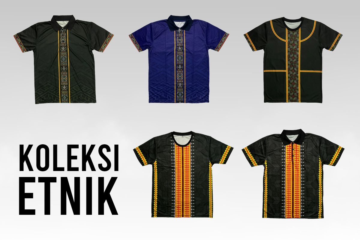 Inspirasi jersey etnik J11, material microfiber. terdiri daripada cutting roundneck dan juga polo.